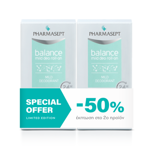 Pharmasept Balance Mild Deo Roll-On 24H Protection Απαλό Αποσμητικό Special Offer -50% Στο 2ο Προϊόν (2 x 50 ml)